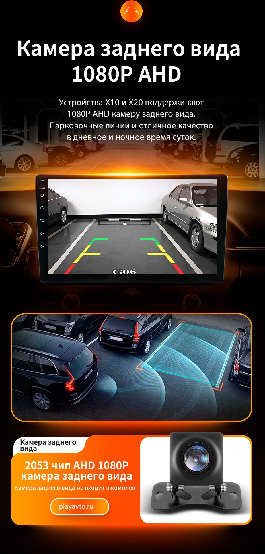 настраивать выключение звука при движении задним ходом. Поддержка AHD 1080p/CVBS |
